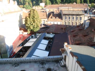 立地は抜群でブラショフメインストリートの歩行者天国の中。