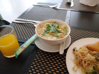 朝食はビュッフェスタイルだったが、その場でスープ麺料理も作ってくれてそれが美味しかった。