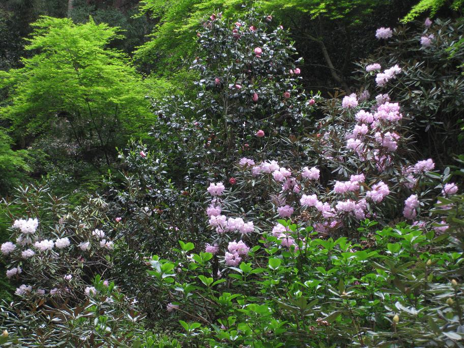 桜・木蓮・平戸ツツジ・霧島ツツジ・石楠花・大手毬・牡丹・紫陽花などが、春先から咲いています。