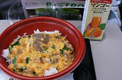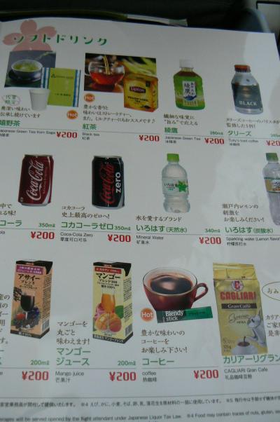 初めてなので機内食に挑戦しようと親子丼と牛とじ丼(各700円)を頼みました。量は少ないし味はコンビニレベル?温かいので美味しくは頂きましたが、男の人では足りないでしょうね。夫はハイボール(缶)400円、私はマンゴージュース200円。丼物とセットだったので50円の値引きがありました。