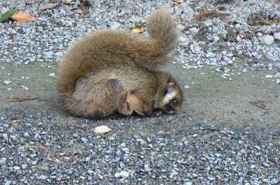 そして、想像もしていなかった珍客に会えました。写真のムササビさんです。もぞもぞして大勢の人に囲まれてしまい、恥ずかしいのか行き場をなくしていたのか・・・神様の使いだったりして・・・┃//(*´・∀・)q//┃p(・∀・`*) カワイィ~ィ- 旅行時期