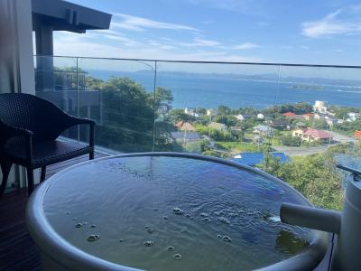 部屋の露天風呂の温度調整は神、夏なのにいつまでも入っていられる