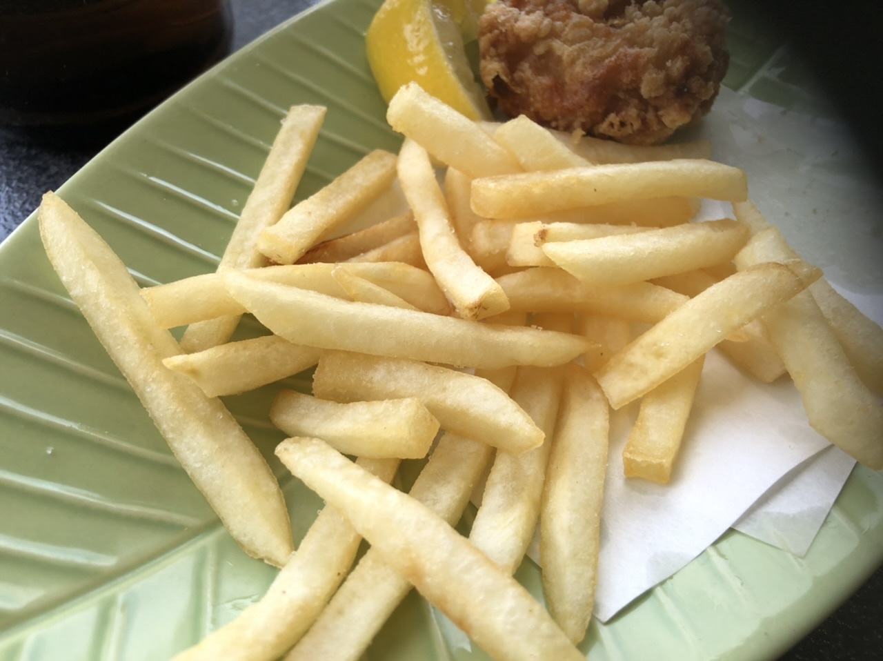 フレンチフライと唐揚げのセットでビールを頂く。