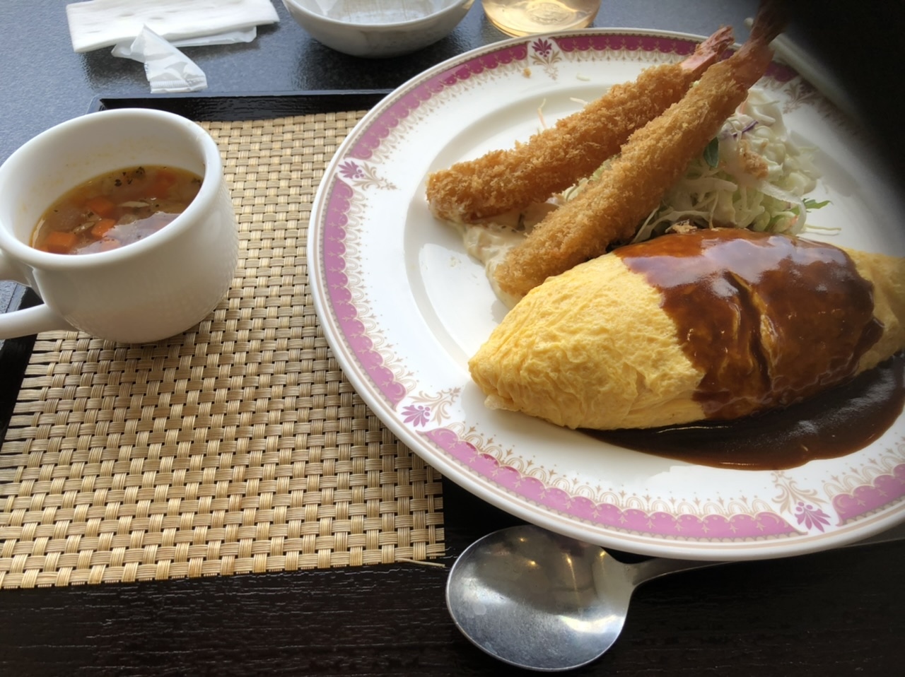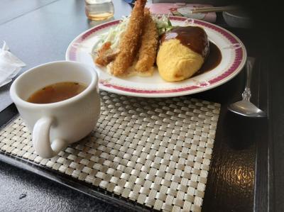 そうこうしているうちにオムライスとエビフライのセットが出てきた