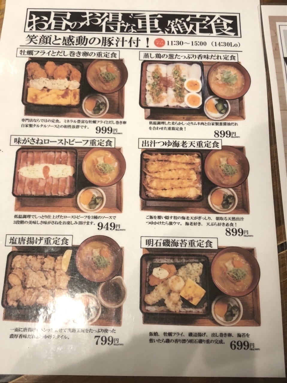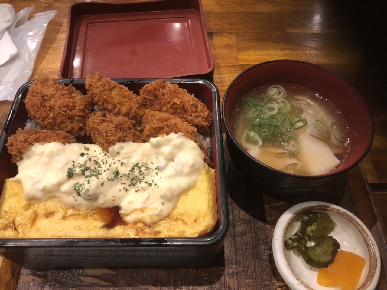 いつもなら焼き牡蠣なのだが、今日は前から気になっていた超お得ランチの中から牡蠣フライとだし巻き卵重にした。