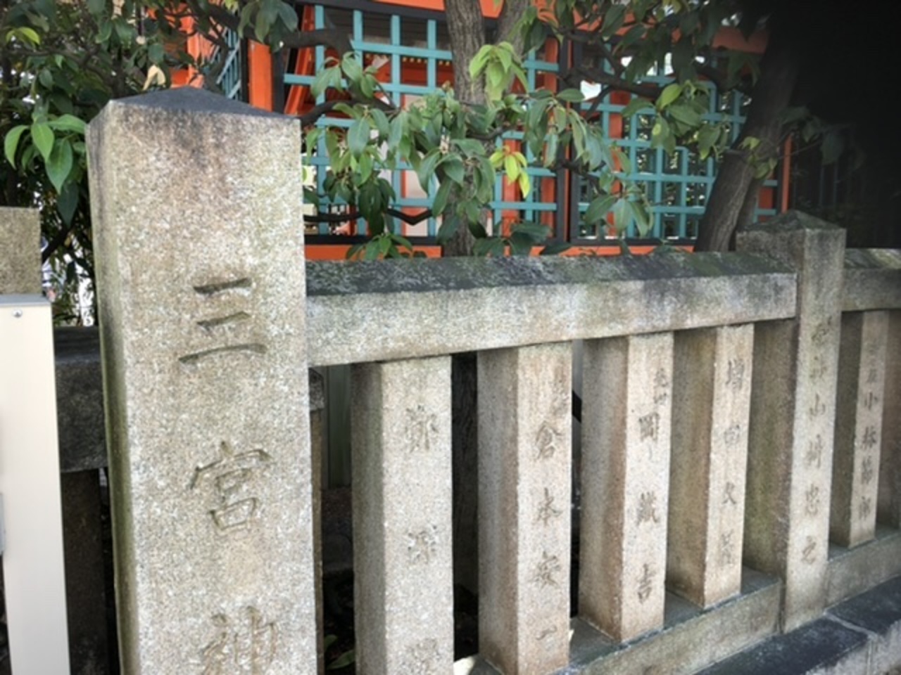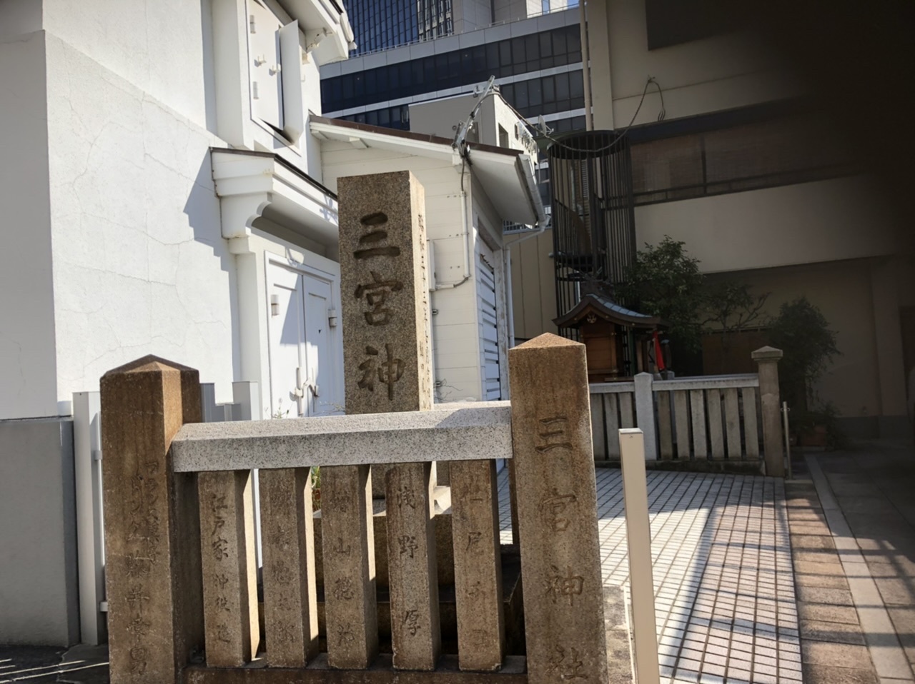 地元の人がショッピングしたり、観光客も多数の商業地域のど真ん中に三宮神社がある