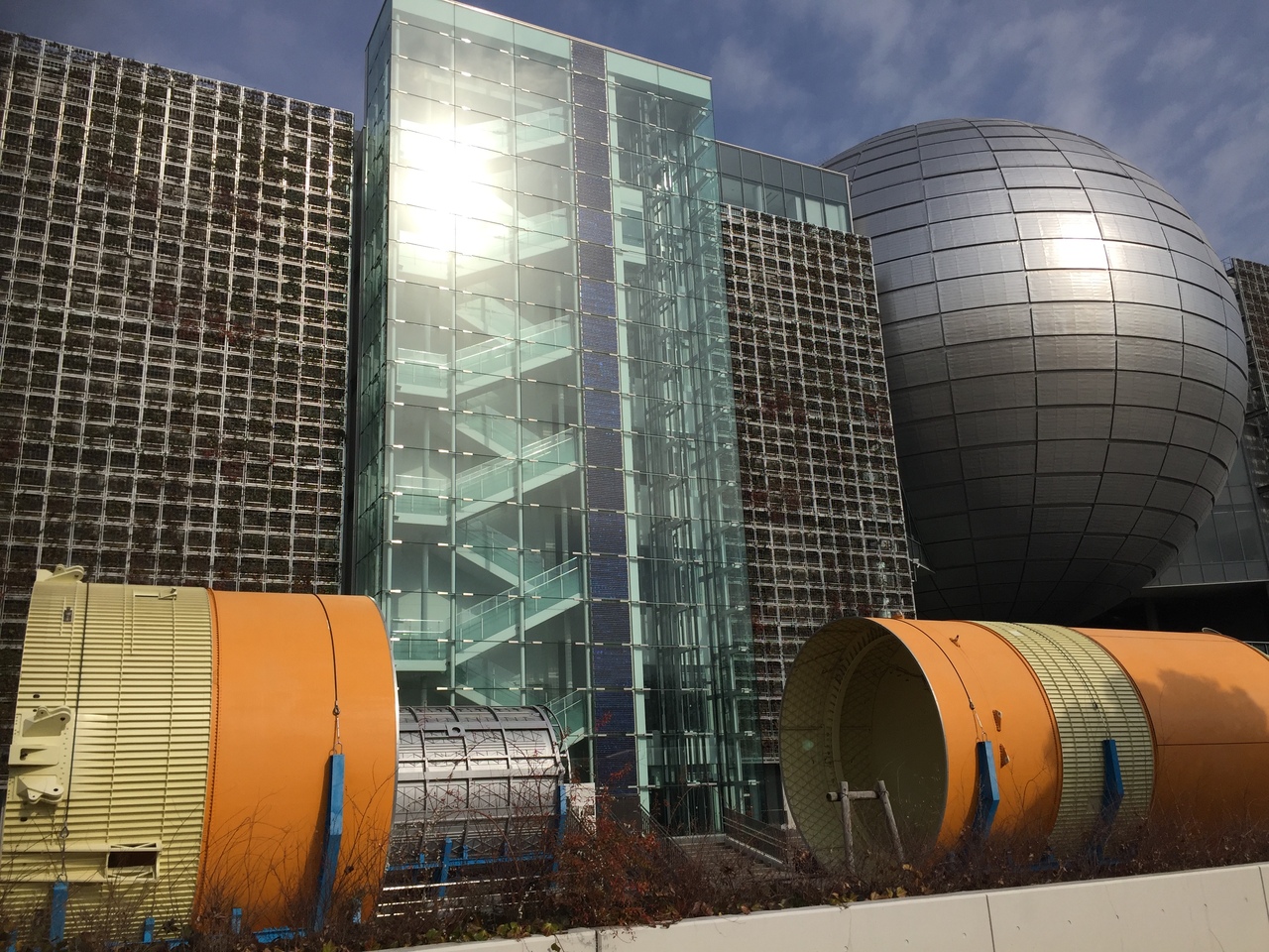名古屋市の白川公園の中にある科学館。どこかでここは博物館だと聞いていたんだけれど、違うようだ。歴史があって何度もテーマが増えたようだ。公園側から見て大きなロケットが横たわっている。時間がなくて見学できなかったけれど、次回もう一度来てみたい。球形の建物はプラネタリウムらしい。大通りから見て、入場口と思しきところに行くと南側行けと言う看板がある。無駄足になります。