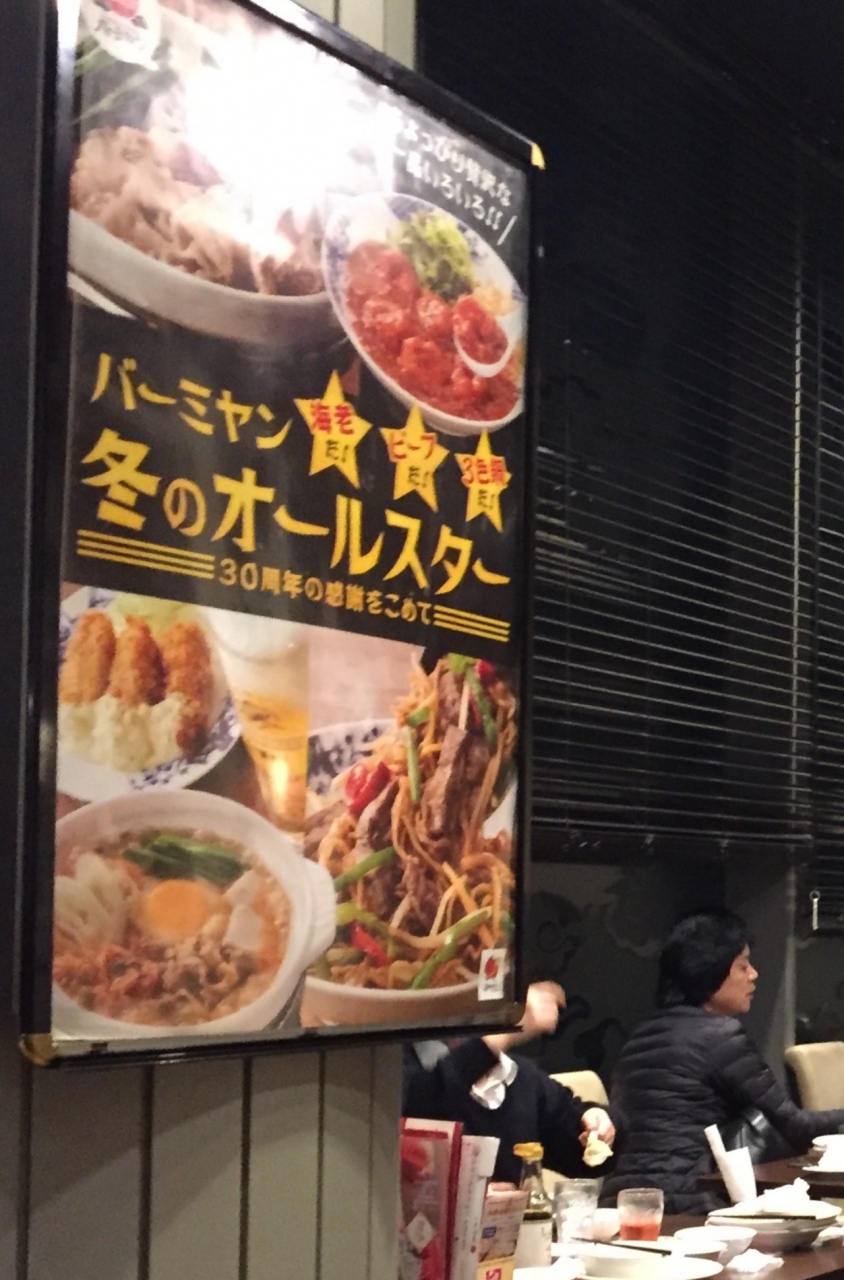 久しぶりにバーミヤンに行く。軽いツマミに温かい紹興酒を手軽に、と言うコンセプトの寒い夕暮れ。ツマミコースは二品で500円と言う、今までお目にかかってない。紹興酒をデキャンタで熱くお願いして気持ち良く飲ませていただきます。追加はダブル餃子、ユーリンチー、シメは海鮮あんかけ炒飯とお腹いっぱい。