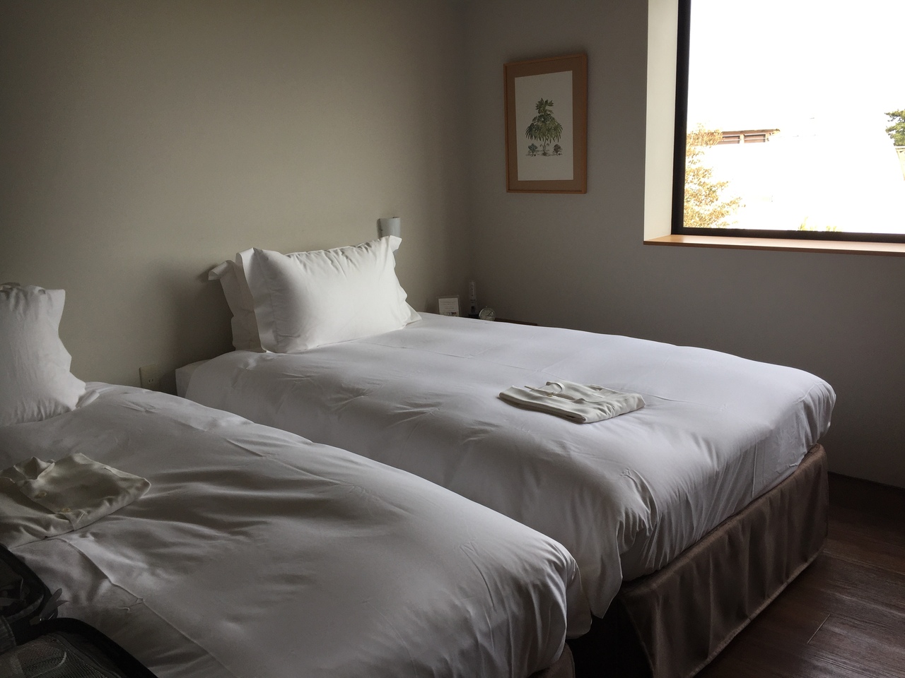 チェックインの時から良い感じで駐車場までお迎え。重いスーツケースをありがと。本館を通りこして別館のビラスイートはメゾネットタイプ。リビングに繋がった半露天のジャグジーに癒される。ベッドはシモンズ、コーヒーメーカーはKimbo、ブルートゥースでBoseに繋いでお気に入りの音楽でジャグジーに。チェックアウトが11時というのもグッド。