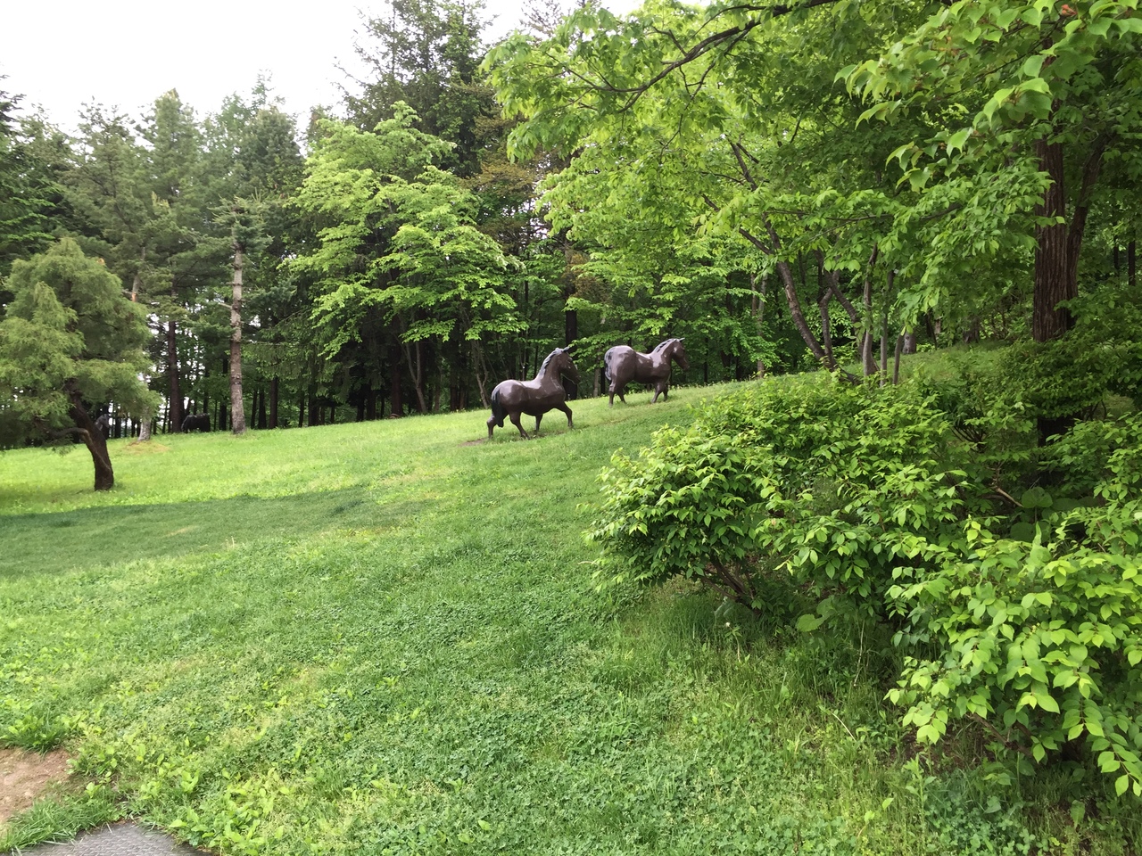 千歳空港から札幌を横目に道央道を旭川方面に向かう。休憩するサービスエリアは岩見沢サービスエリアでどうだろう。綺麗に掃除が行き届いたこじんまりしたサービスエリアだ。サービスエリアの建物の横には道産馬のモニュメントや、牧場が再現されている。息抜きに丁度いい。