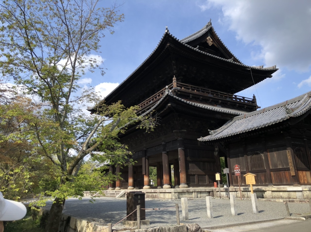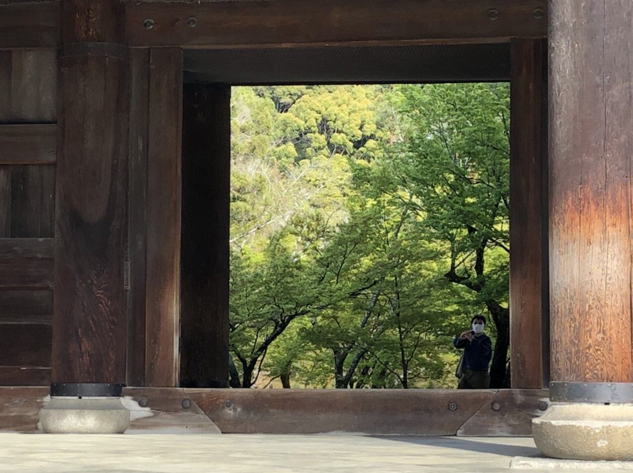 南禅寺の有名な門です。高さ22メートルと言う大きさにも圧倒されますが、ここは見方を変えて遠目から見た門を通して見えるその先の景色が新緑が美しいと思いました。- 旅行時期