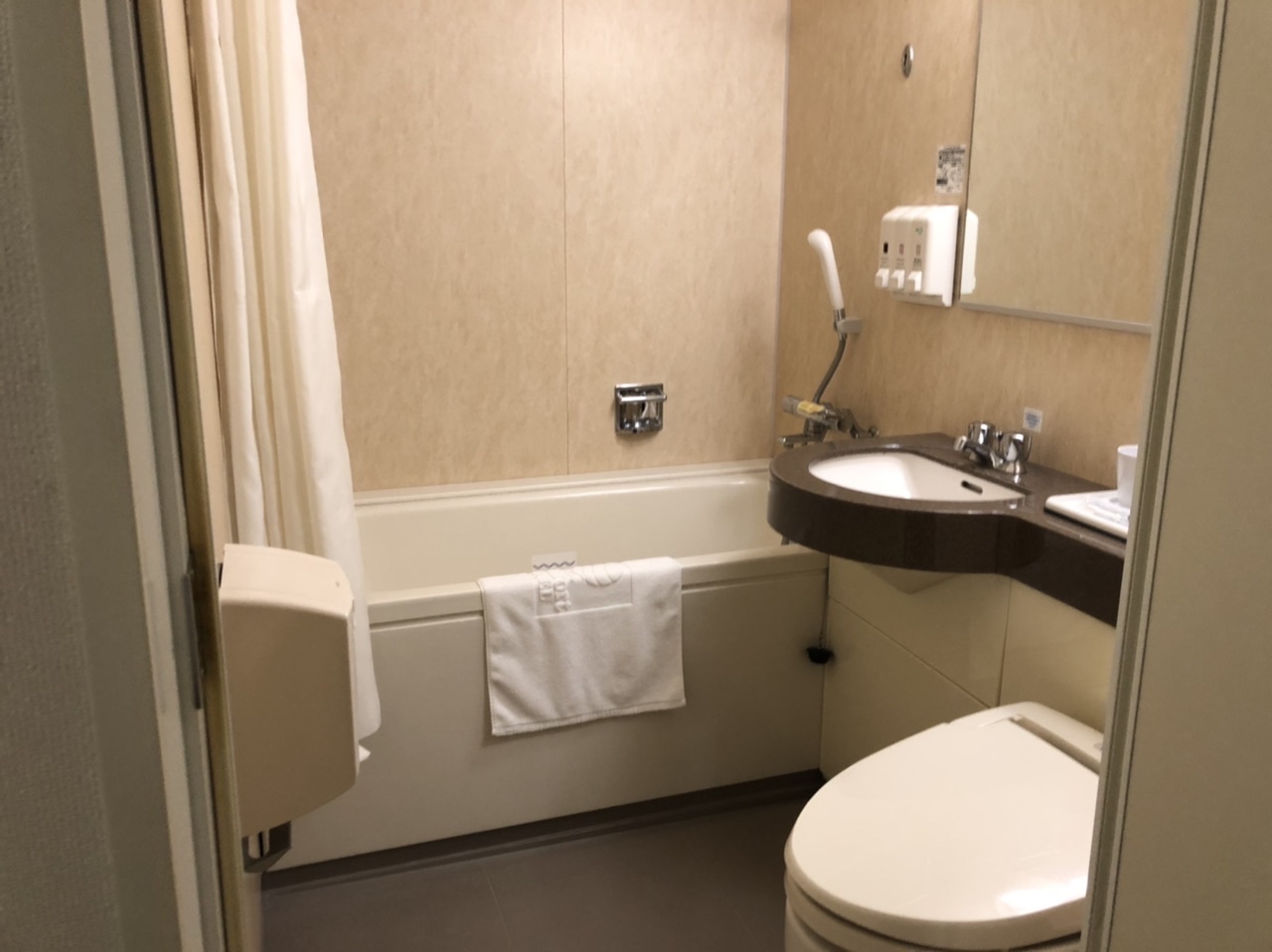 JR関内駅から徒歩3分と便利な立地にある。チェックインチェックアウトはとても短時間でスムーズにできる。朝食付のプランを選ぶと2階のコメダ珈琲店でホテル朝食をいただくことになる。このご時世すぐ近くのマルエツプチがあることも遅い時間にホテルに戻ってもとても便利だ。1階にはコンビニ、サイゼリヤもあっていろんな意味で便利なホテルだ。客室の広さは17平米でそれほど狭さは感じない。ベッドはクインサイズ。