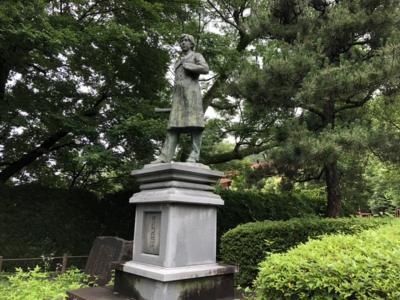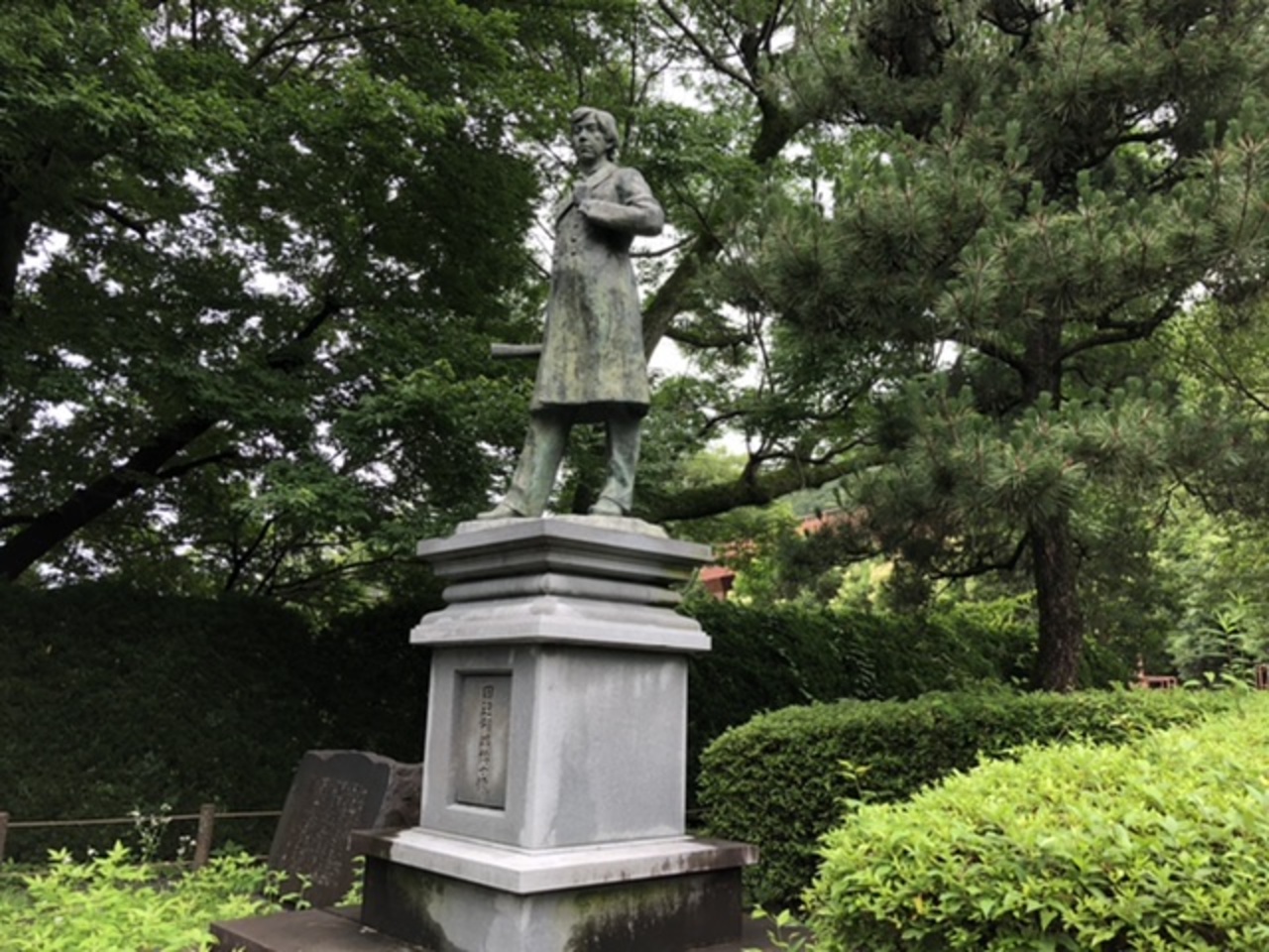ねじりまんぼから疏水水路に沿って山を少し登ったところに小さな公園があり、ここに田辺博士の銅像があります。