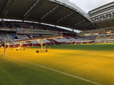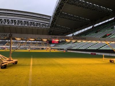 もちろん芝の中は歩くことができず、周りの人工芝の部分だけなんだけれども、芝の育成のための人工的な明かりなども間近で見れて貴重な経験をさせていただきました。- 旅行時期