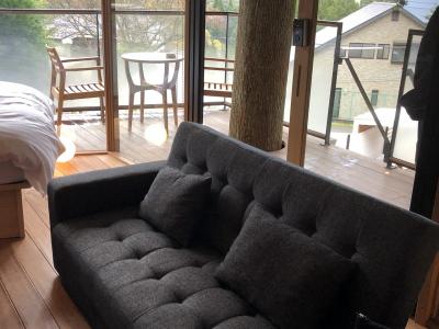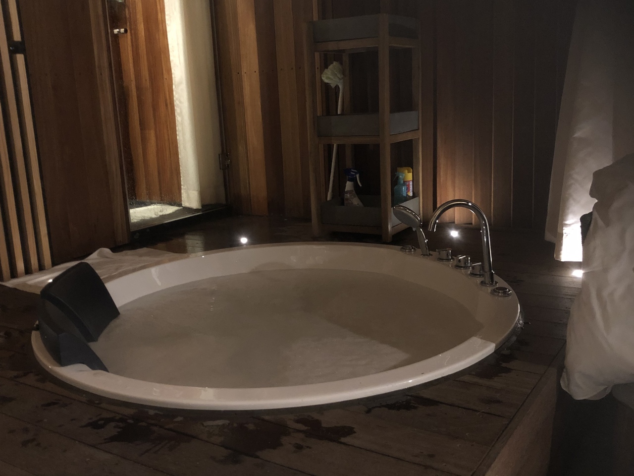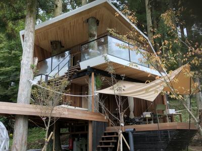 ドームも魅力的だが、Tree Cotiに宿泊。シャワー、トイレ、冷暖房はもちろん開放的なジャグジーもある。ツリーハウスは子供の頃の夢じゃないか?