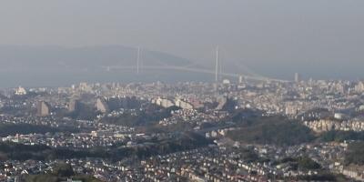 振り返ると 明石大橋 瀬戸内海 ポートアイランド そして遠くに 大阪も 見える
