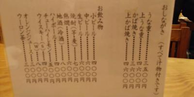 開店と同時の1130に予約を入れ、10分前にお店に到着するともくもくと蒲焼きの煙。店はカウンター5席、テーブル16席程度か。ビールにアテを訪ねると漬物が付いてくると。蒲焼き、胆焼き、熱燗で30分で店を後にした。- 旅行時期