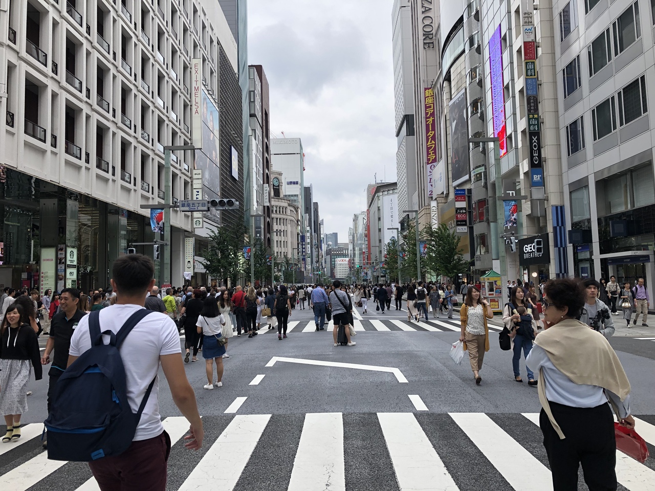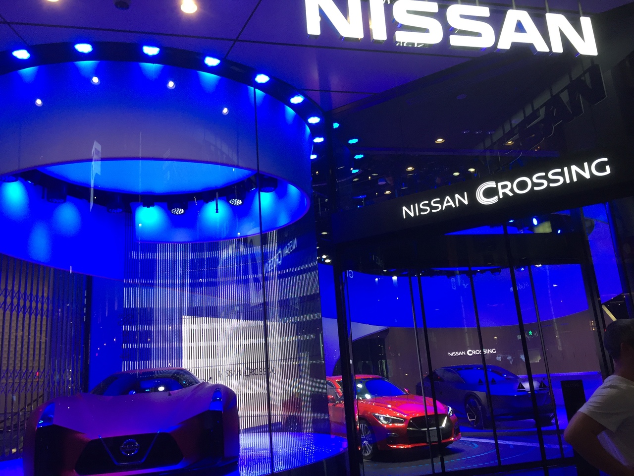 場所は銀座中央通り。四丁目交差点付近にあるニッサンショールーム。