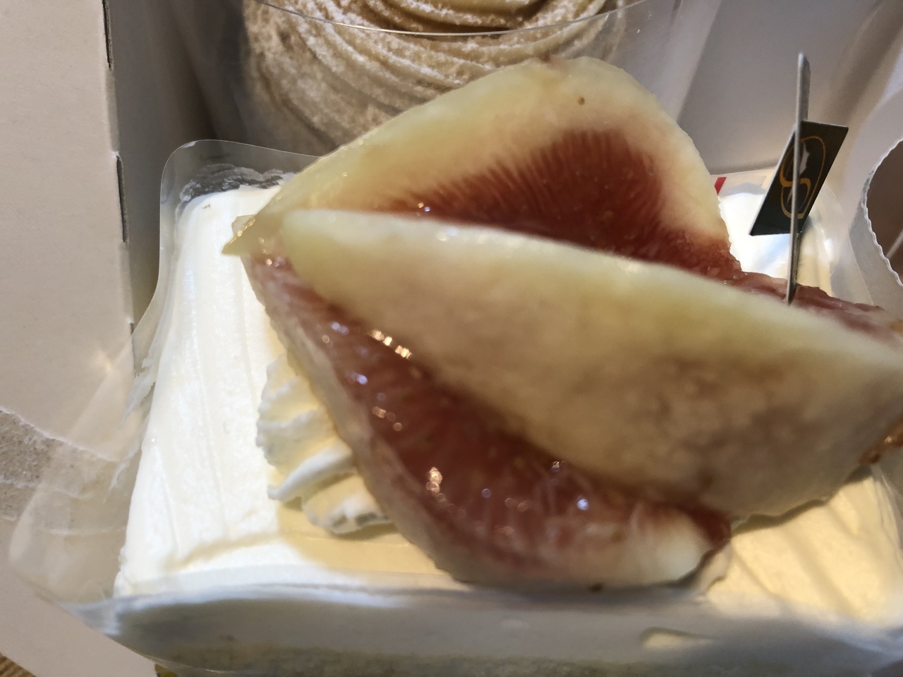 無花果がトップに存在感ありで、さらにスポンジの間に無花果のスライスがしっかりと入っている。