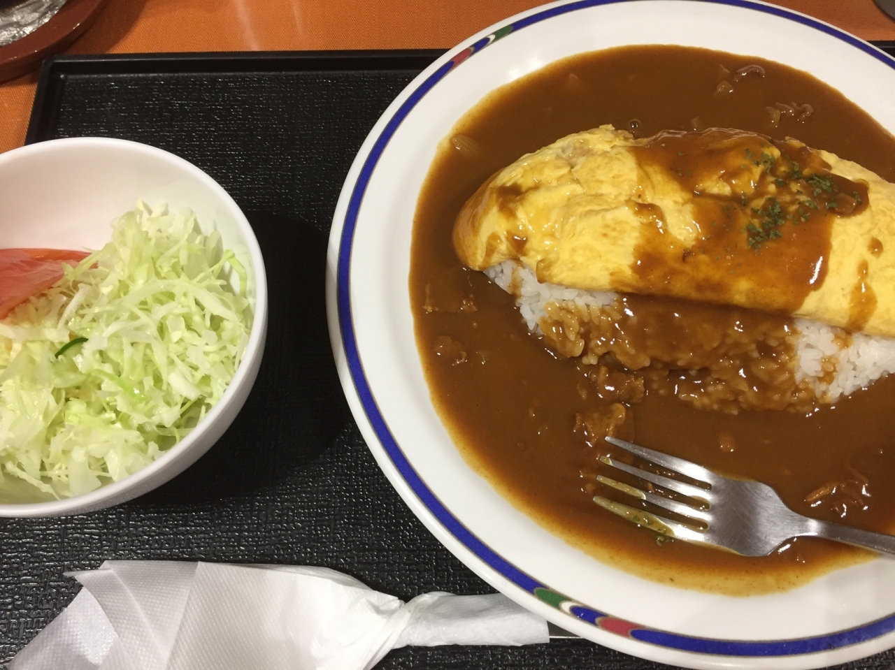 オムカレー+サラダ+アイスコーヒーのセットを頂いた。オムレツは及第点。カレーは特長なかった。- 旅行時期