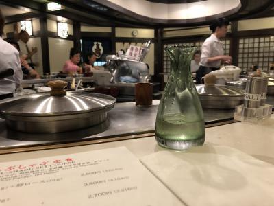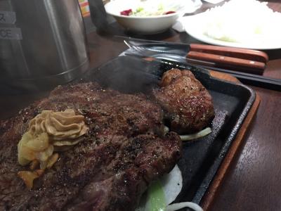 普通締めはお茶漬けとかラーメンとか炭水化物でしょ。だからライスと4種から選べるサラダとご飯のセット350円はご飯が大盛りでも同じ。そしてリブアイステーキを400グラムでかなり分厚く切ってもらう。後は焼き上がりを待つのみ。- 旅行時期
