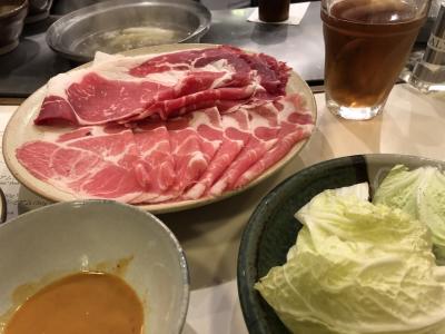アスパラ豆腐かトマトサラダから選ぶ、しゃぶしゃぶは牛豚ミックスであぶらが美味い。