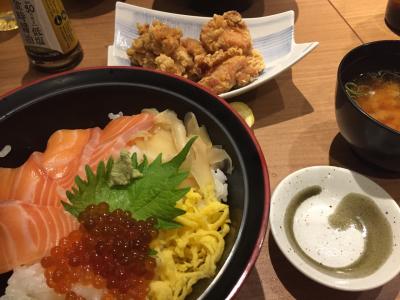 シャケトロいくら丼、北海道ザンギをつまみにビール飲みながらまったり出来ます。