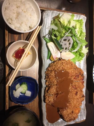 相方は青空定食、こちらはわらじのような巨大チキンカツ定食。これも野菜たっぷり。