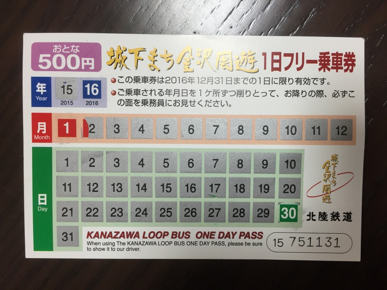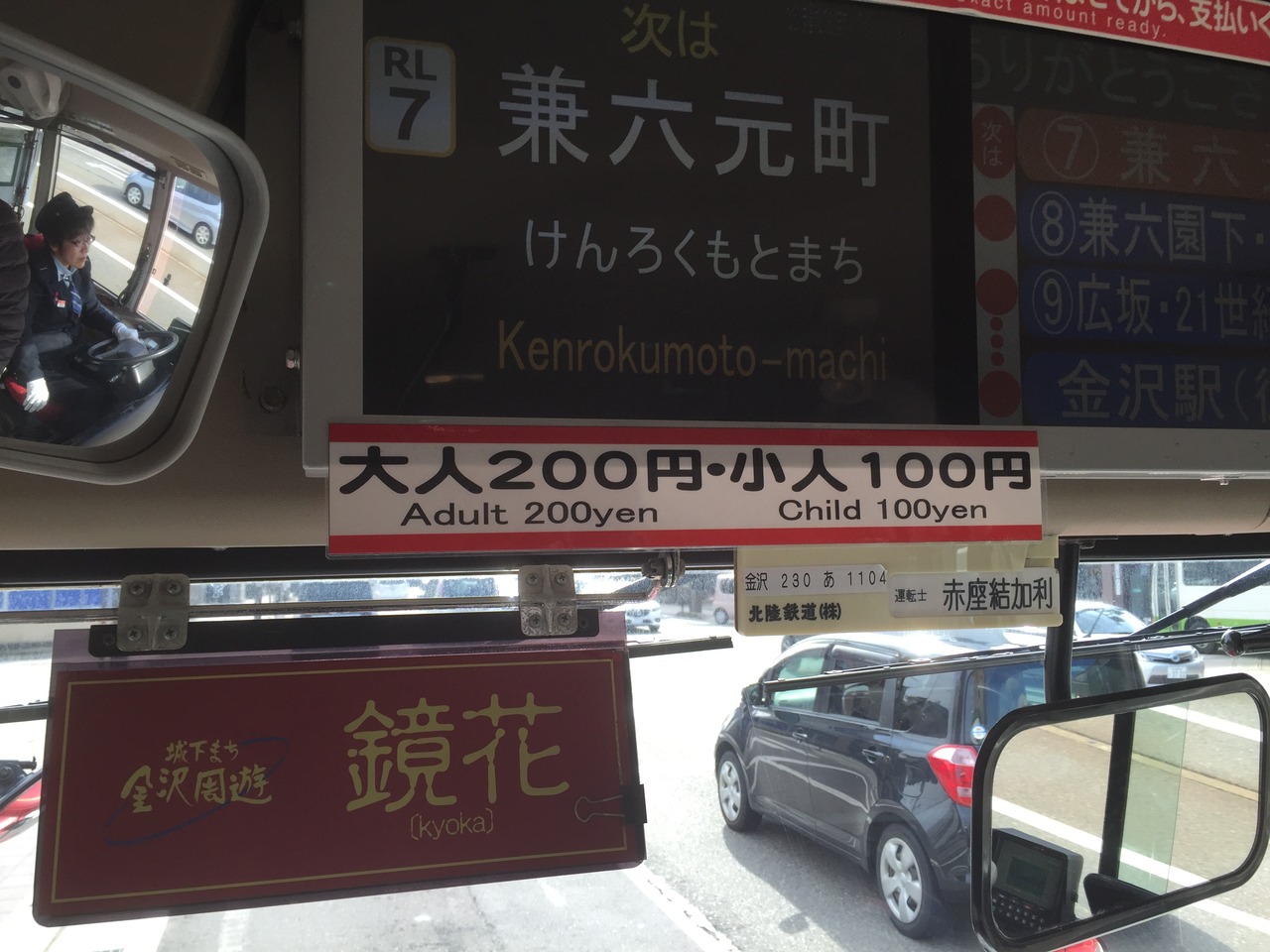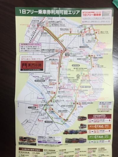 金沢観光に周遊バスは強力な助っ人だ。まず、1日フリーパスを購入。路線概要を確認。右回りルート、左回りルートと兼六園シャトルという三路線が金沢駅を起点に出ている。さらに北鉄バスの路線バスもフリーパスで乗車可能。うまく組み合わせて金沢市内自由自在。
