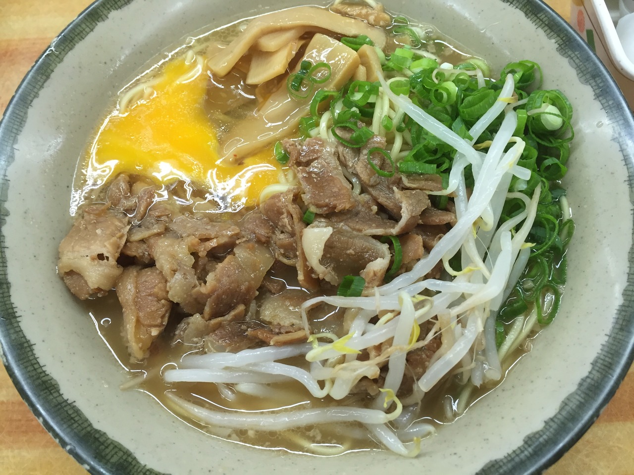 うどん以外でオススメは徳島ラーメン。徳島ラーメンの特長は少し濃いめの味付けの三枚肉。さらにあなぶき家は生卵を乗せている。個人的には半生の味玉が欲しい。- 旅行時期
