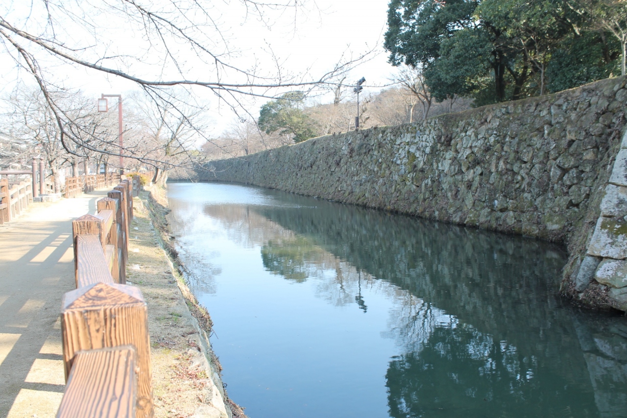 千姫の小径はお堀と川に挟まれた静かな遊歩道。途中川の対岸に古い民家があったりしてお城以外にも面白いところがある。- 旅行時期