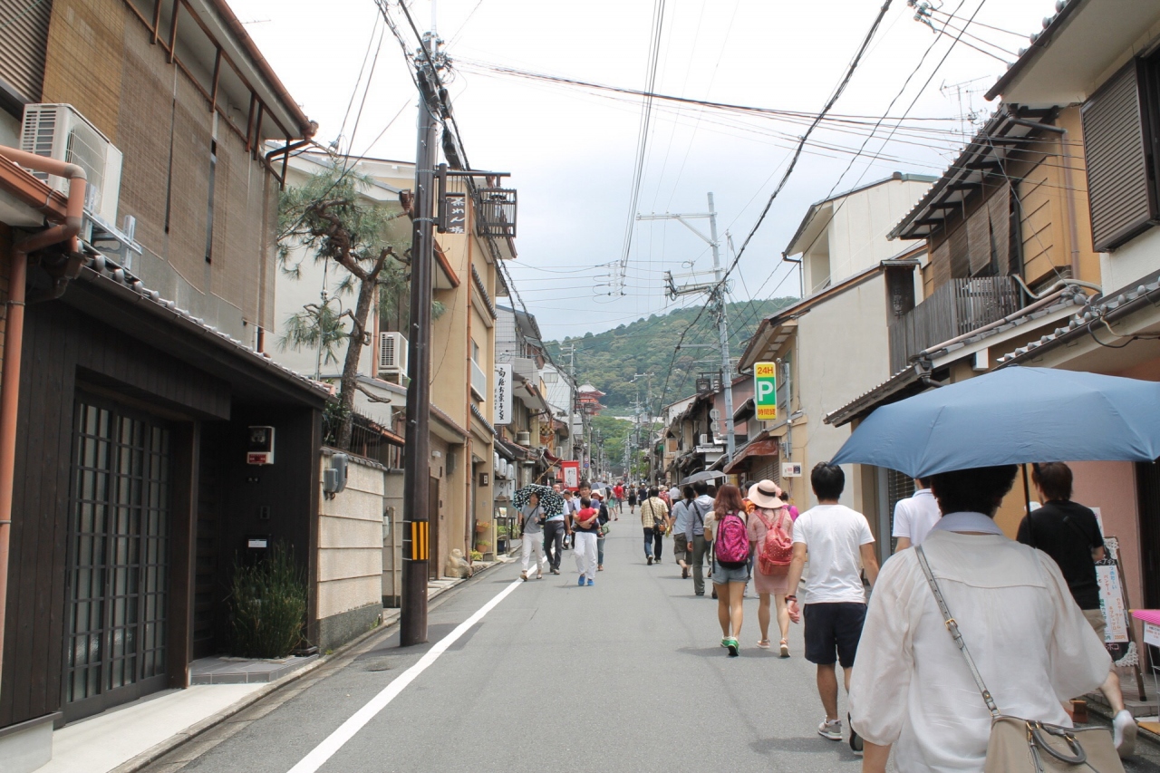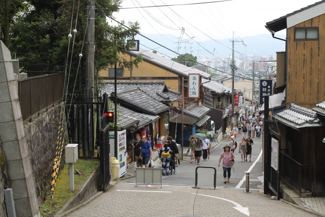 京阪電車の清水五条駅から徒歩7,8分で清水下の交差点に着く。ここから清水寺に向かうと100メートルほどで右に分岐する道が茶碗坂。まっすぐ行くと三年坂。テレビなどで清水寺へのアクセスと言えば三年坂が多いが、人混みの少なさから歩きやすいので店に興味がないなら茶碗坂が良い。