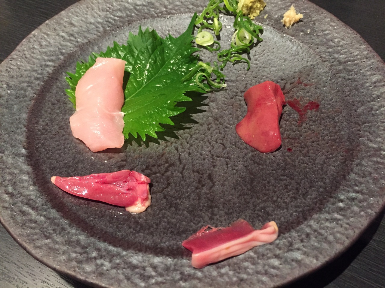 鳥刺し盛り合わせ。