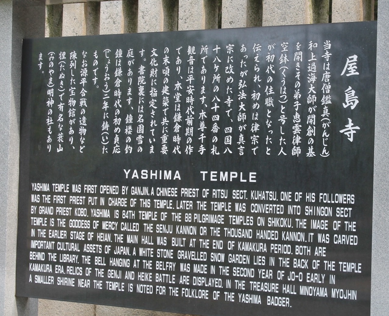 遍路道に並行してのケーブルカーはわずか五分程度。八栗寺の駐車場側に到着しますので、まずは山門へ一旦行きますが、200メートルばかり山門を通過いて戻ると見晴台があり、84番の屋島寺が遠望できます。改めて山門から順に本堂、大師堂と回ると下山道に繋がり、ケーブルで戻るもよし、遍路道も急な下りではないのでハイキングを楽しむのもいいでしょう。- 旅行時期