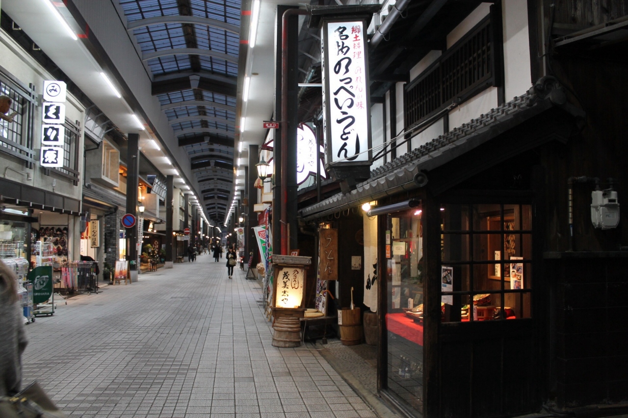 アーケードがあるのでお天気を気にせず歩けます。もう少し早い時間帯に来るべきでした。- 旅行時期