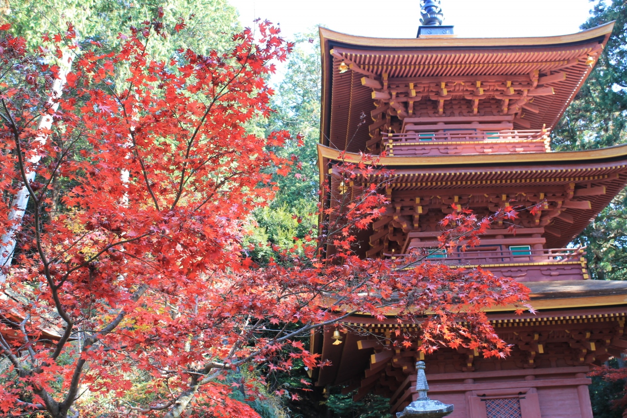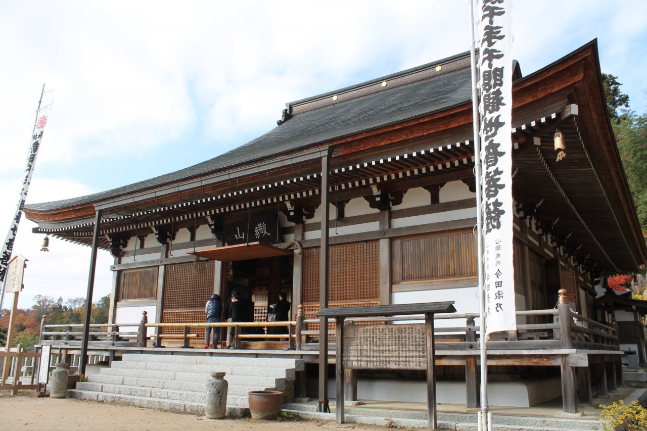 ここは本堂、三重塔共に国宝である。県の文化財不断桜も咲いていました。- 旅行時期