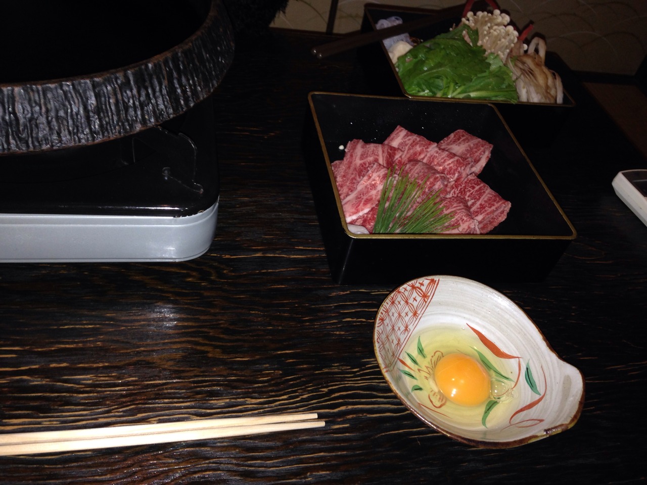今日は黒毛和牛のすき焼きコースにしてみた。