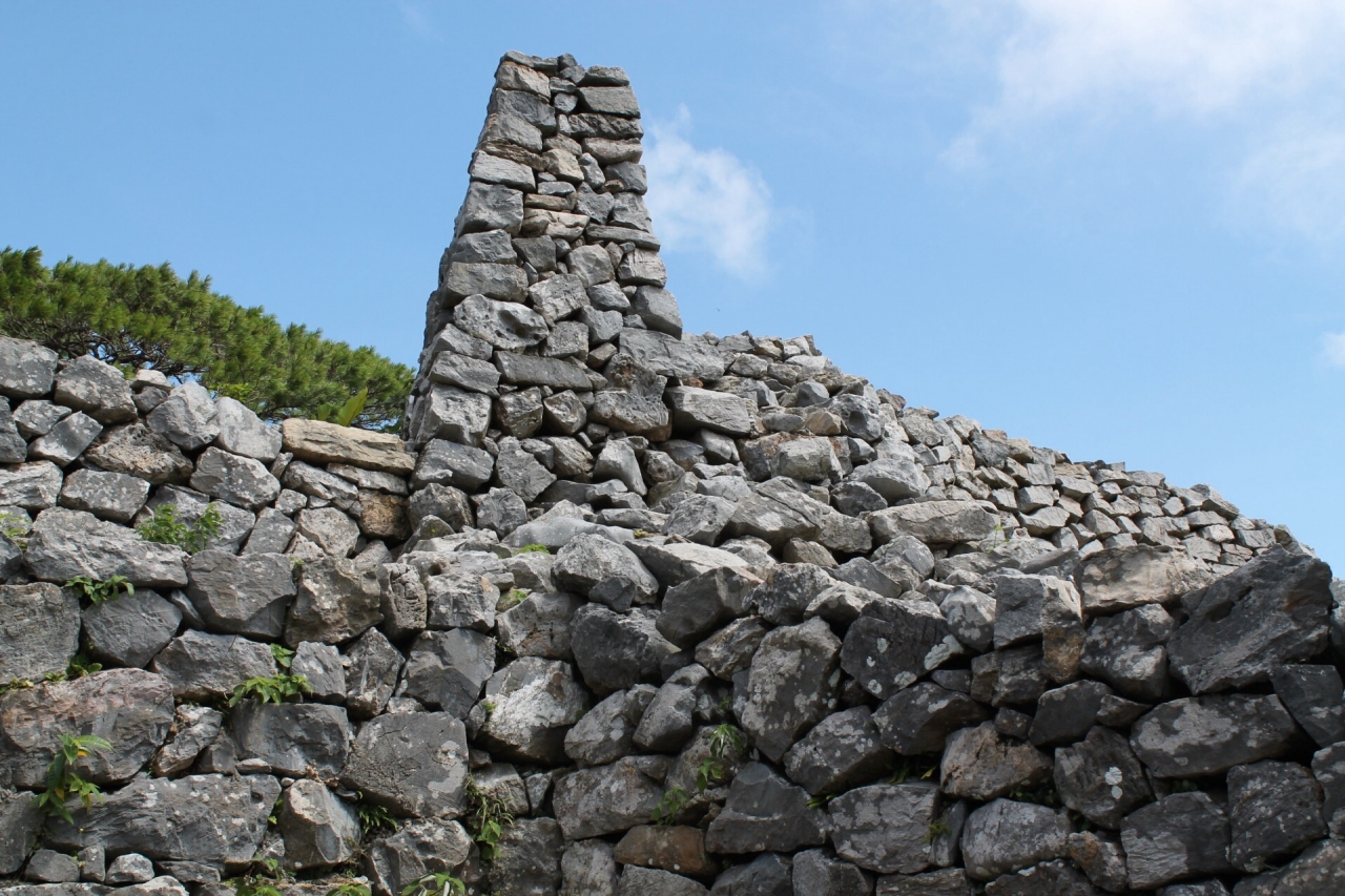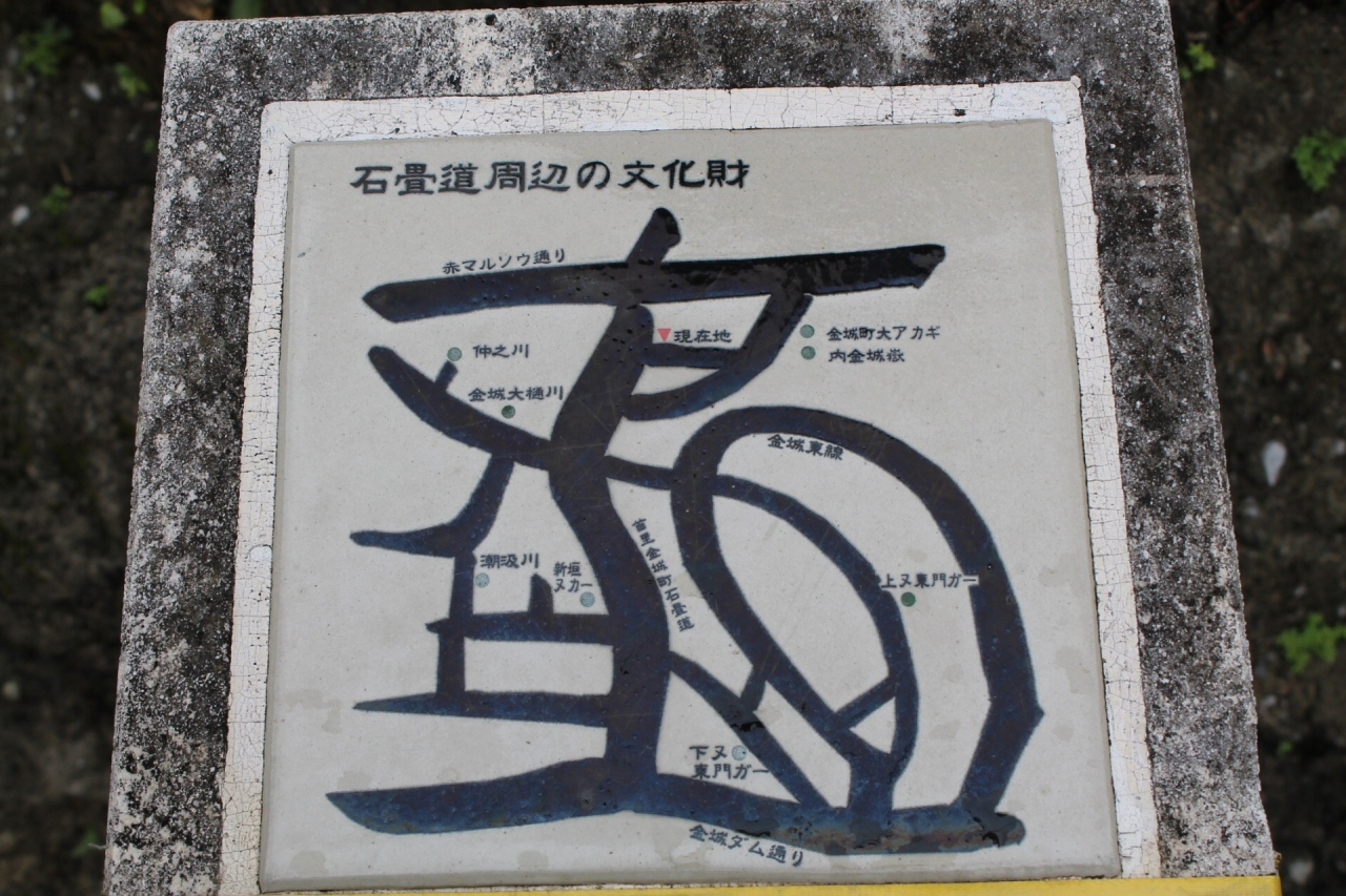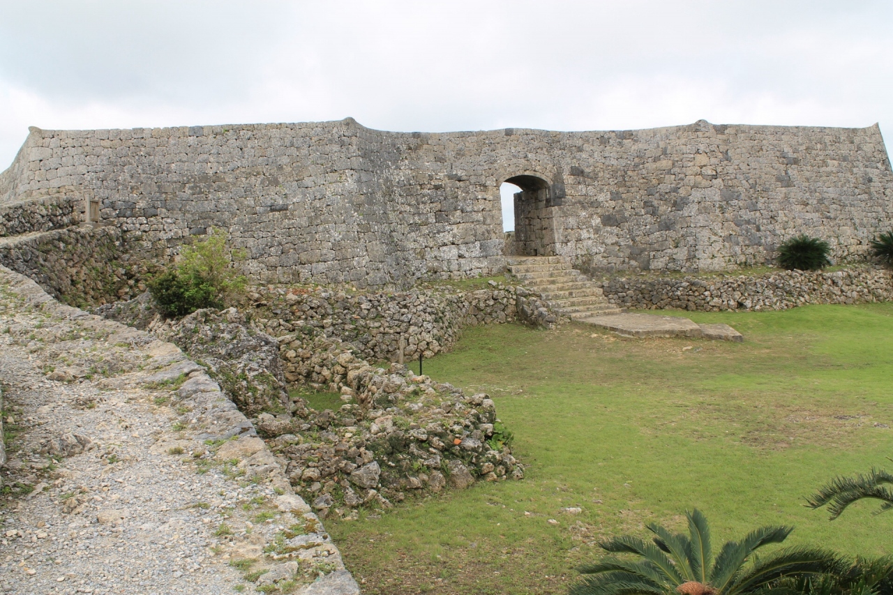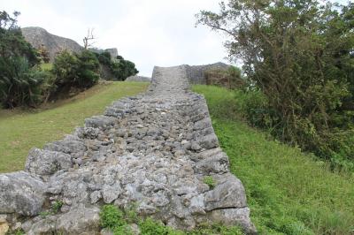 そんな柄では無いのだけれど、駐車場に車を入れてチケットを買い、パンフレットに目を通しながら城跡を歩く。観光地化しているのか、ここだけはカメラ用に無料三脚があったりして、微笑ましい。ここは中城城跡や勝連城跡とちょっと違ってるんだよね。それは石です。