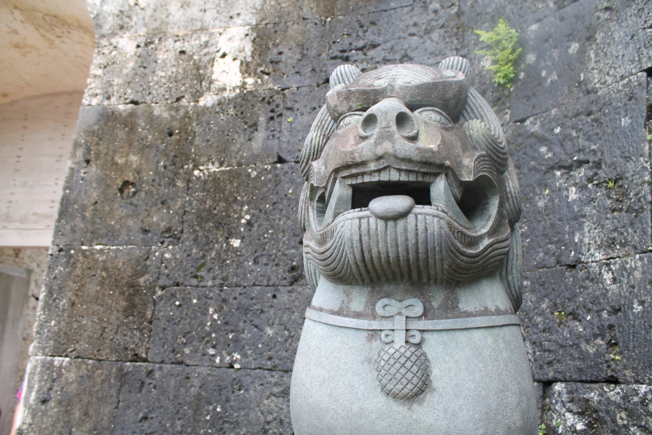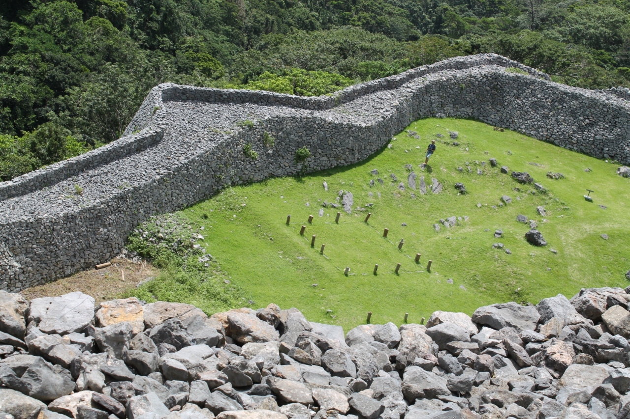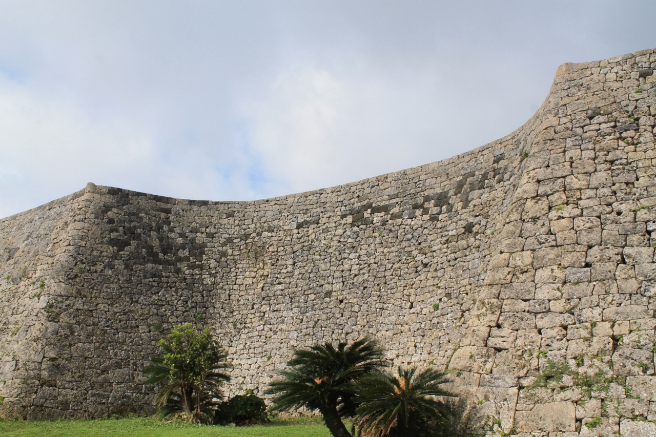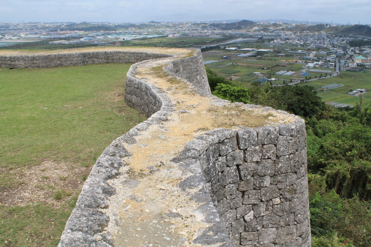 そんな柄では無いのだけれど、駐車場に車を入れてチケットを買い、パンフレットに目を通しながら城跡を歩く。観光地化しているのか、ここだけはカメラ用に無料三脚があったりして、微笑ましい。ここは中城城跡や勝連城跡とちょっと違ってるんだよね。それは石です。