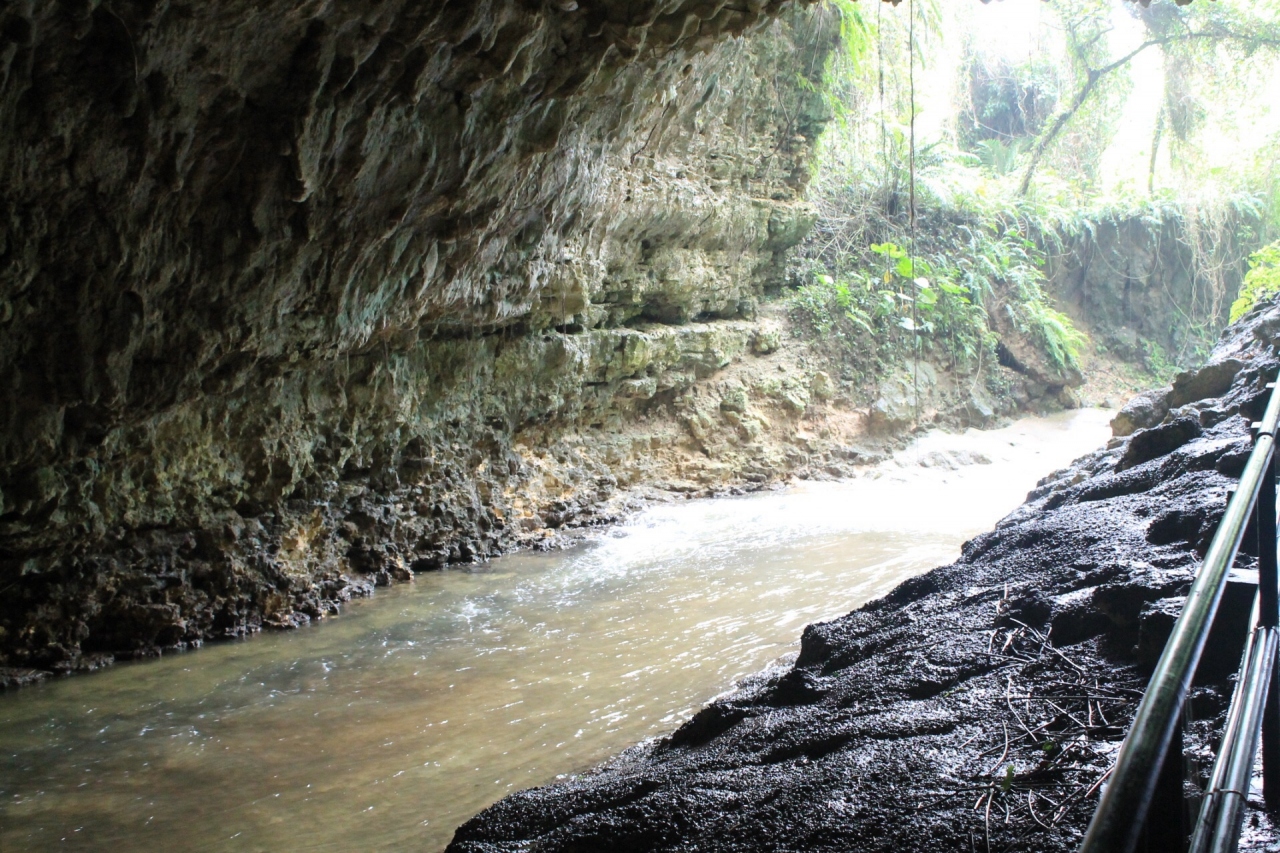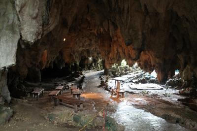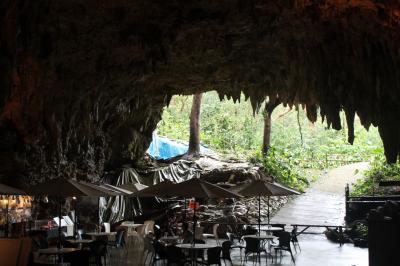 ケーブの中は鍾乳石が少しあったり、片隅では港川原人の発掘調査場所にビニルシートがかけてあったり。