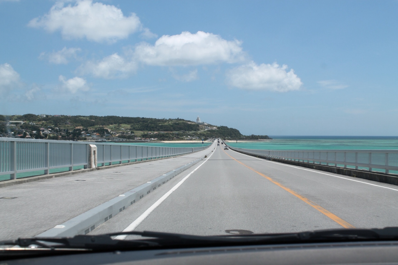 左手にマリンスポーツの店が過ぎ。橋と島が海の色に浮きあがって見えた頃、ちょっと車を傍に停めてシャッターを切ってみる。この景観が一番好きだ。- 旅行時期