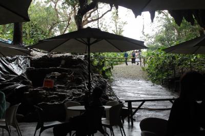 各テーブルには大きな傘がかけられている。地下水がポタポタと降りかかってしまうからだ。- 旅行時期