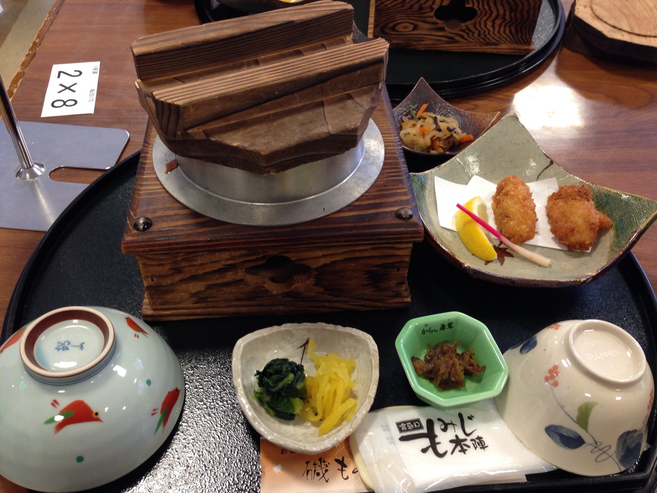 宮島へ渡る前に昼食と言うことで、フェリー乗り場に近接したおおき土産もの店の中にある磯もみじに入ってみた。普通の丼物から麺類もあるけれど、ここはカキかアナゴでしょう。ちょっとイメージが違ったかな?関東と関西の違いかもしれません。美味しく頂きました。