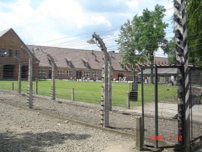 有刺鉄線に囲まれたアウシュビッツ強制収容所。