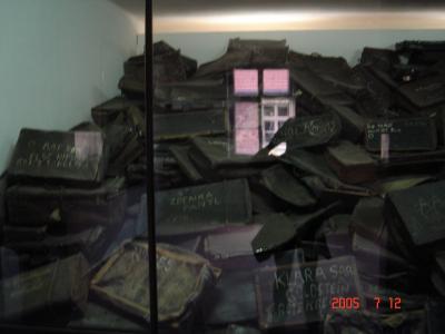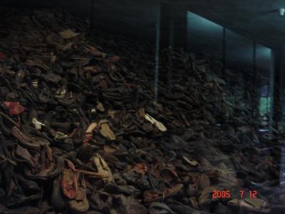収容され、処刑された人たちの靴がうず高く積まれている。
