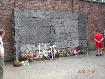 銃殺が行われた壁には、常に慰霊の花がたむけられている。