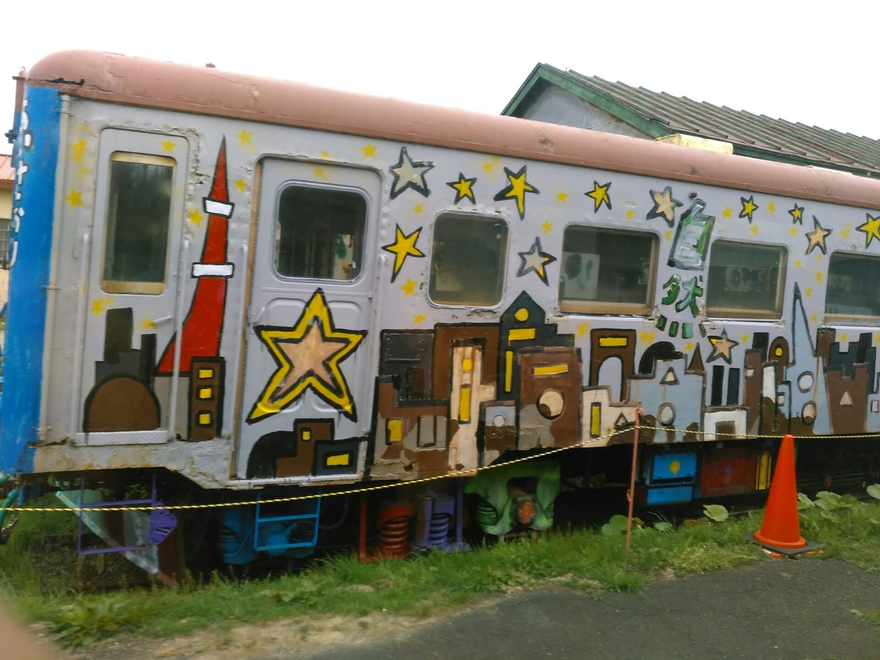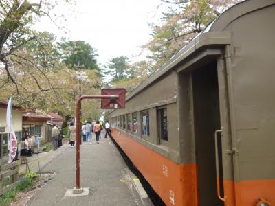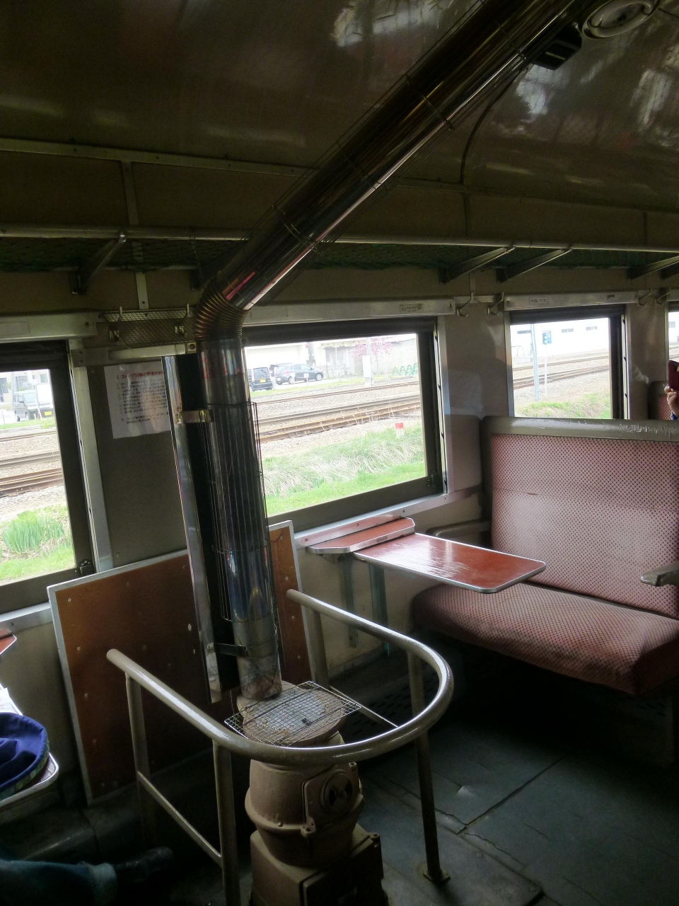 本来素晴らしい桜のトンネルなど花見電車に乗る予定だったのに、今年の突然の暑さ・寒さで、もはやすっかり葉桜になってしまっての五所川原訪問。可哀想に思ったのか、偶々の列車運用の都合か知らないが、芦野公園まで乗ったのが、冬季にはストーブを焚くというストーブ列車でした。マニアが沿線や途中駅で待ち構えていたのがビックリでした。社内のアテンダント?嬢の話は、なかなか良かったです。