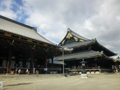 西本願寺とは違い、2層の大山門で、それも改修したばかりで、金色も白色も真新しく、まばゆいばかり。大きいし・・・。西本願寺から京都駅への途中、思わず初めてお参りした。大銀杏がないからかどうか知らないが、京都駅に近いのに、西に比べ中国の人が圧倒的に少なかった。
