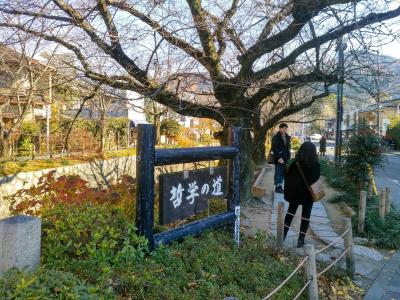 久しぶりに、銀閣へ。まず人力車の呼び込みに驚かされる。この寒いのに・・・。紅葉を見ながら山寺群を巡れるという、紅葉なんかもうあるかいな! 先週嵐山で一杯いた中国の人たち、さすがにここはそれほど写真映えしないのか少ない。むしろ修学旅行生が目立った。そういうわけで、この哲学の道は京都らしい雰囲気で散策できた。