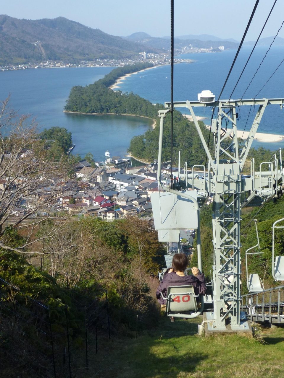 モノレールは時間間隔があるので、やはりリフトでの往復がお勧めです。特に下りはずっと橋立・宮津湾を見ながらの空中散歩がいい。JAFを見せると50円割引、旅館でも割引券をくれる。座席に冷たくない様にマットを引いてくれるのも有難いです。